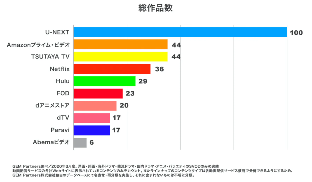 動画配信サービスといえばネットフリックスが有名ですが、それに次ぐ利用者数の多さとなっています。