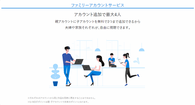 ご自身以外にあと3人に子アカウントを作ることができるのも嬉しいサービス。