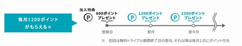 (※無料トライアル期間は半分の600円分のポイントが付与)