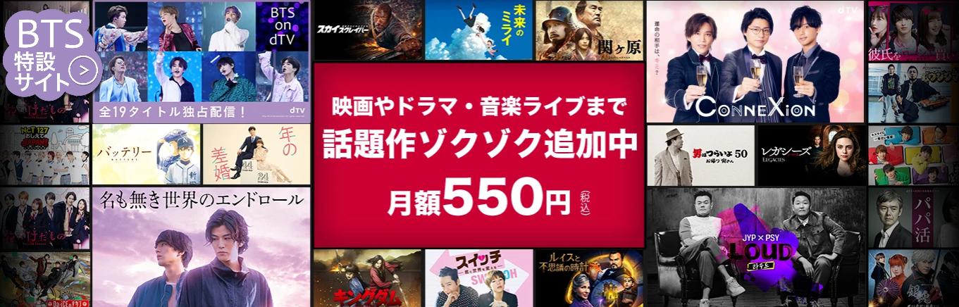 dTVは動画の種類が豊富なのにもかかわらず月額550円と格安な動画配信サービスです。