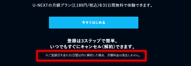 なので31日間はU-NEXTのサービスを使いまくって、自分に合わないなと思ったら解約するも継続するも自由。