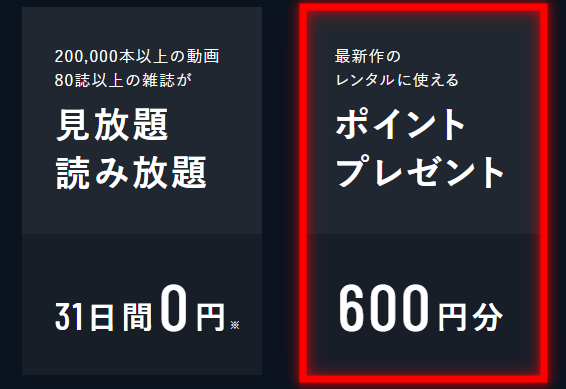 - 600円分のポイントがもれなく貰える